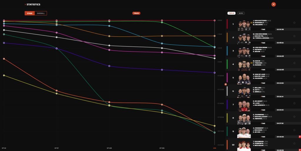 In the battle for fourth place, the 20-year-old rally driver did well today. Czech Jaroslav Valtr lost 2 hours and 28 minutes due to problems in the dunes of Saudi Arabia. Van den Brink junior is now fourth overall again.