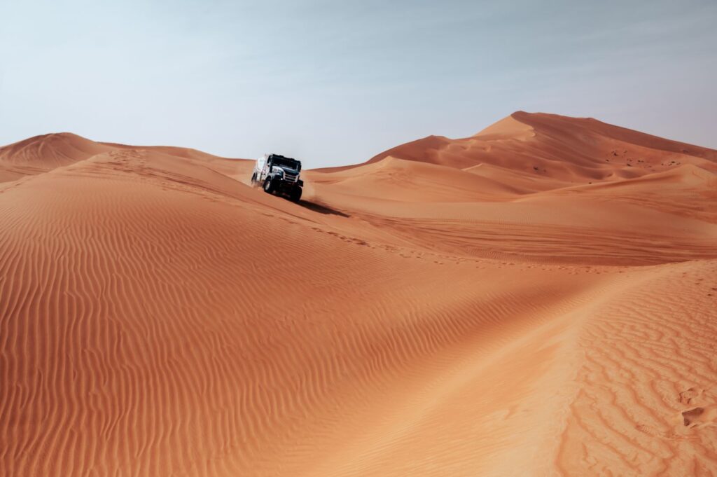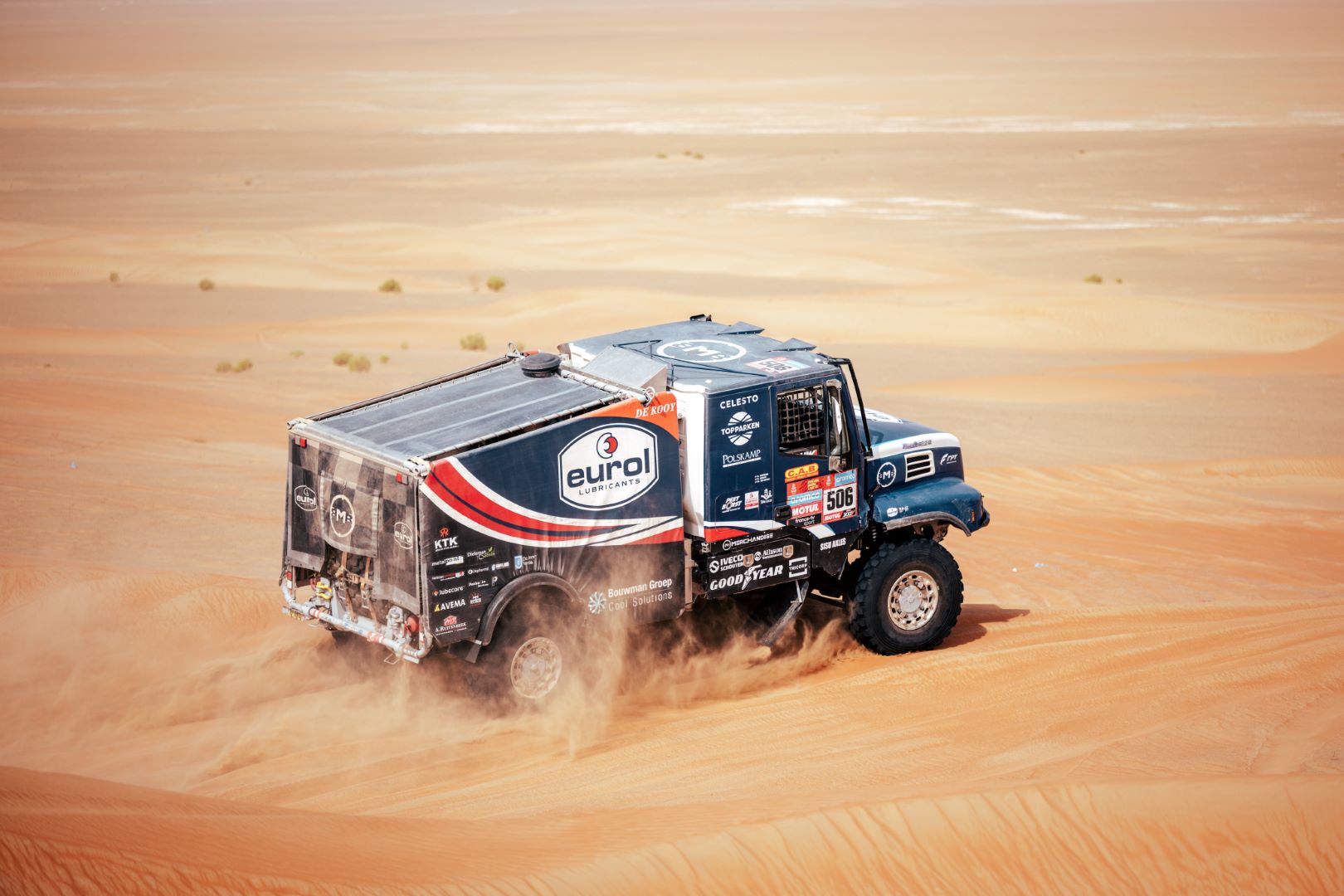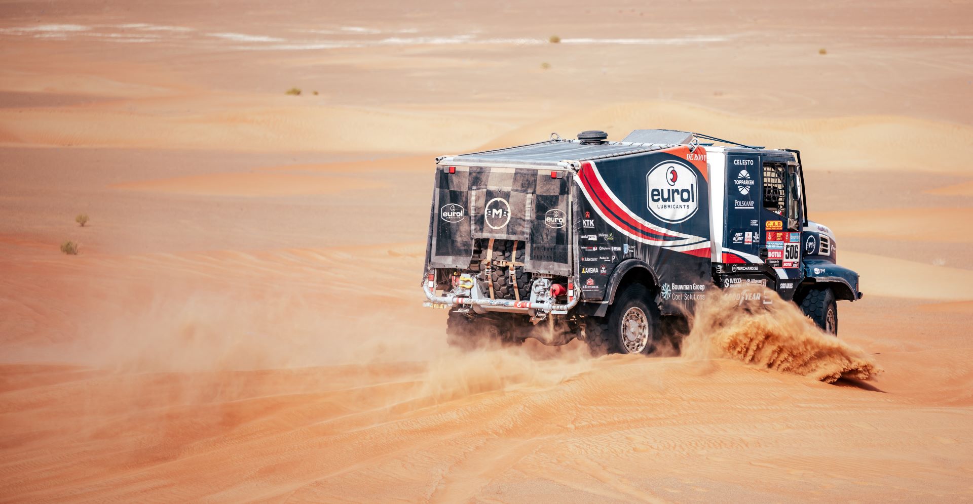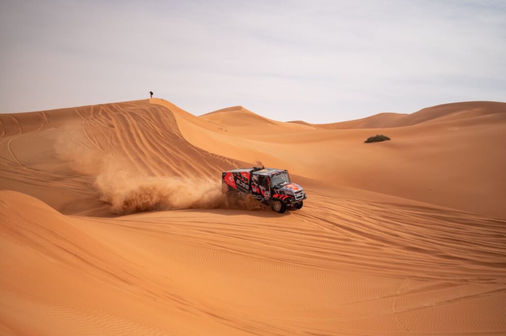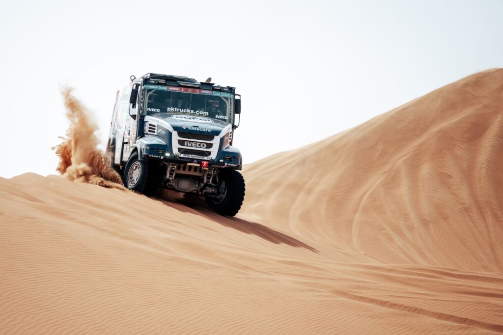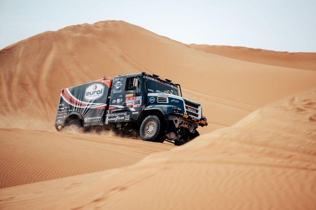 Janus van Kasteren jr., Marcel Snijders and Darek Rodewald started the twelfth stage with a minimal lead in the general classification of only 1 minute and 12 seconds. Boss Machinery Team De Rooy Iveco was the fourth truck to start the 185-kilometer special stage. In line with the past few days, this special stage also takes you through The Empty Quarter with its almost endless sand plains and dune areas.