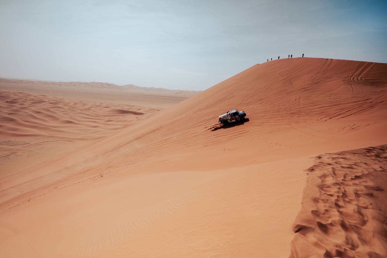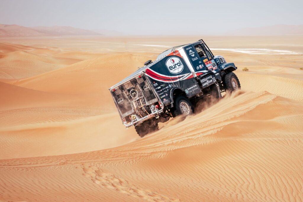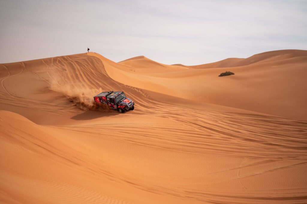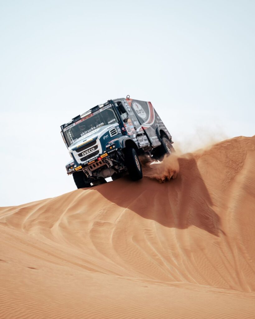 Even the large Iveco Powerstar can become a small Dinky Toy in that imposing environment.Β Everyone in the bivouac seems to agree that the Dakar belongs in these areas. The soft sand makes the highest dunes almost impossible hurdles to overcome. Here, on Friday the thirteenth, Janus, Marcel and Darek find their happiness. The direct competitors are caught up and overtaken one by one. Technology, navigation and driving; everything went right today.