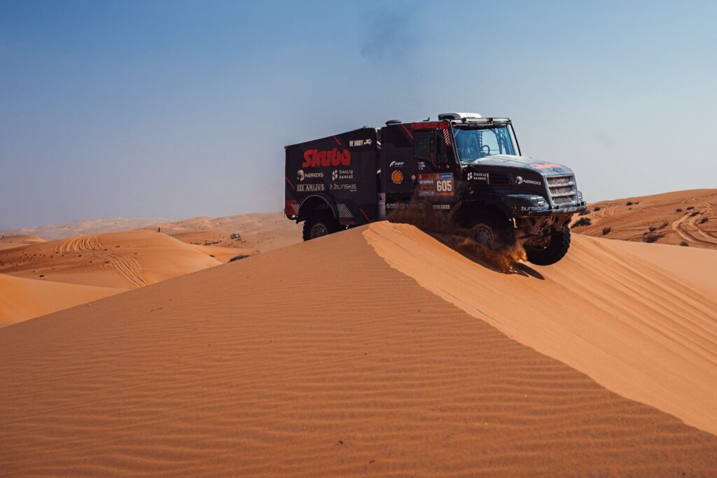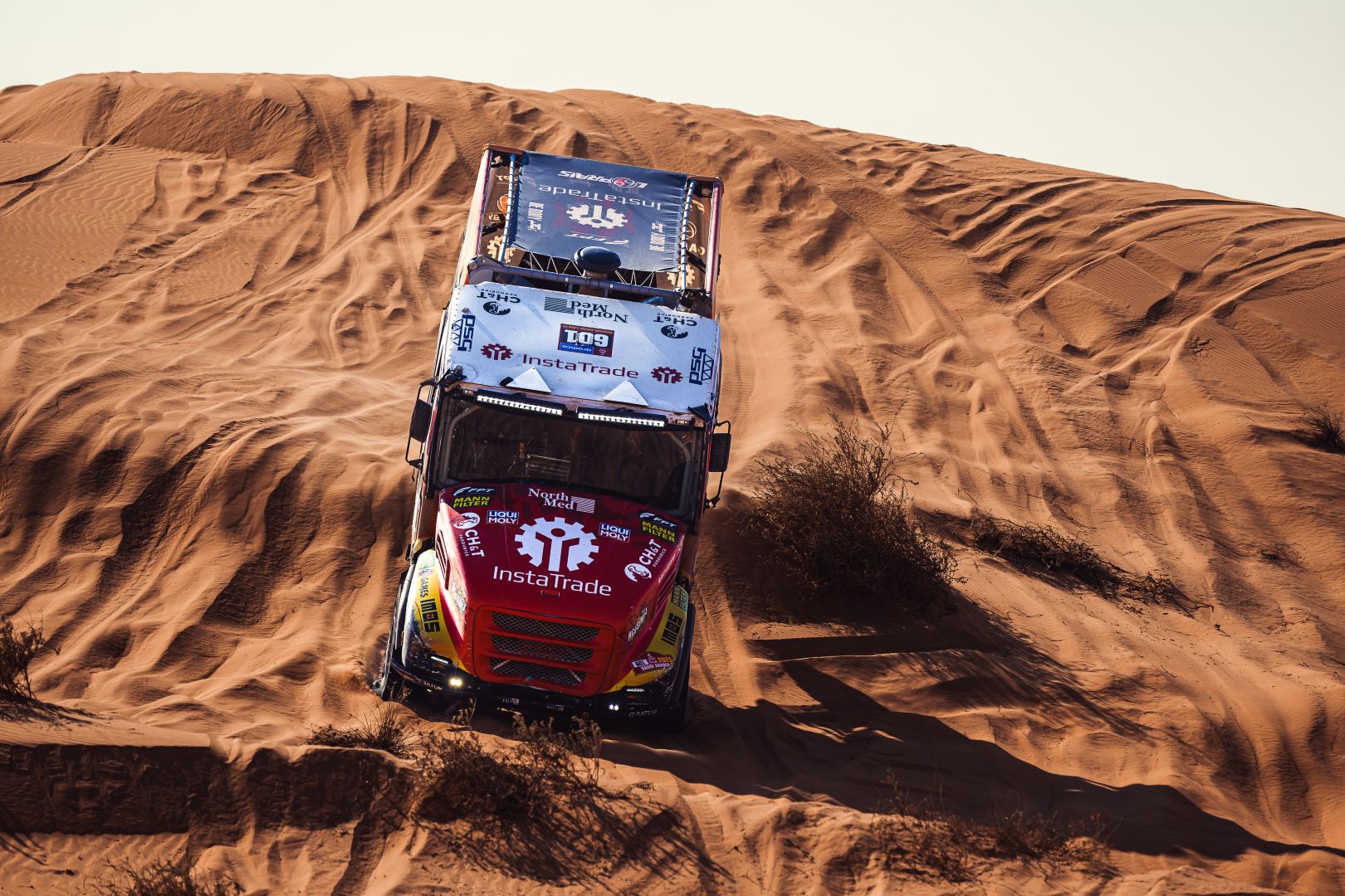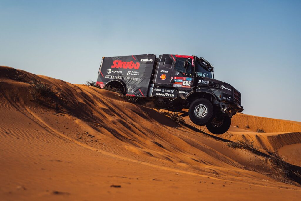 All three Iveco trucks from Team de Rooy FPT showed strong speed on Wednesday. Ε½ala posted excellent split times that suggested a possible stage win, but the Lithuanian driverβs chances were derailed by a crash that cost him 20 minutes.