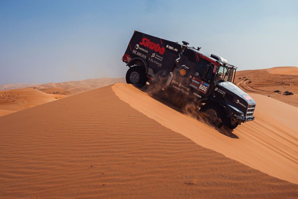 Representing Fried van de Laar Racing Team de Rooy FPT, Anja van Loon delivered an impressive performance. She demonstrated excellent driving skills on the high dunes of the Empty Quarter, securing a respectable sixth place.