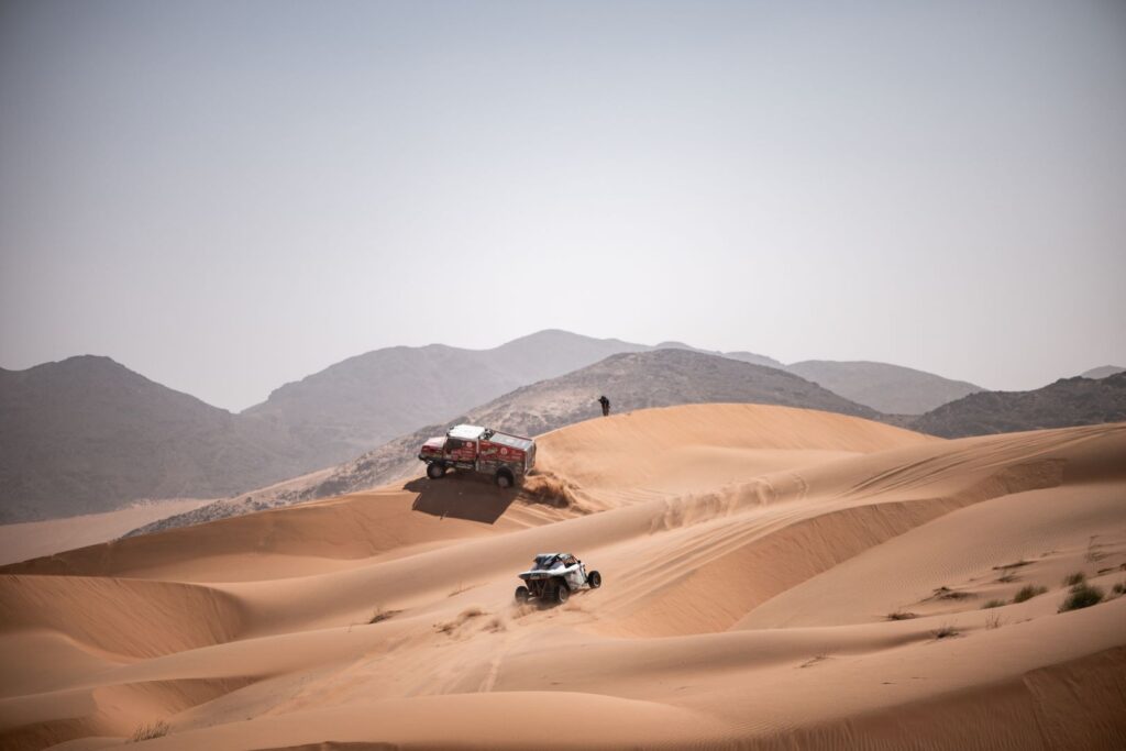 The first part of the 48-hour stage with 967 kilometers of special stage was about getting as far as possible and staying out of trouble. Racing was allowed until 17:00. After that, each vehicle had to find the nearest one ahead of the six so-called break zones.