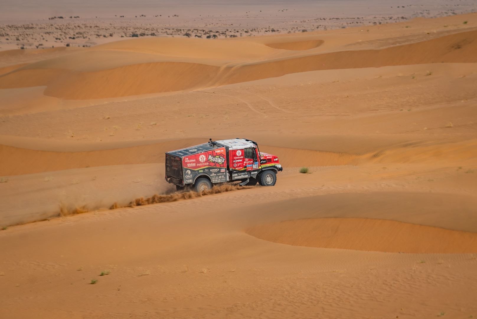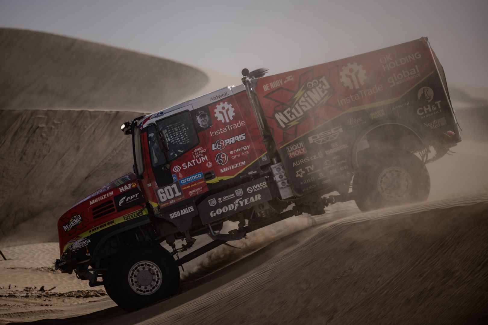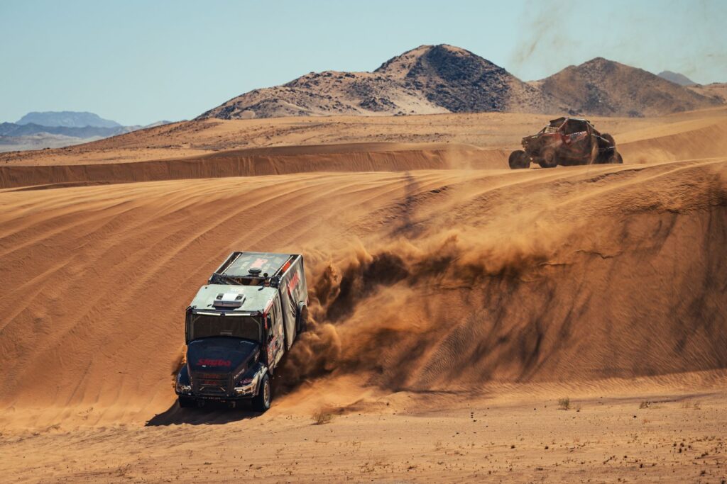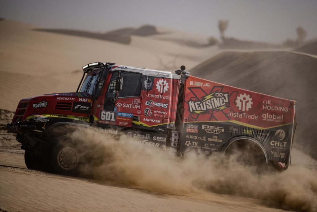 For all three drivers, the Iveco Powerstar proved to be a potent, solid, and reliable vehicle in the Saudi desert. The fact that Loprais of Instatrade Team de Rooy FPT suffered a puncture was just a detail, as was the fact that the Czech and his crew lost some time because they missed a waypoint. The difference to the stage winner and defending champion Martin Macík was only 9:43 minutes.