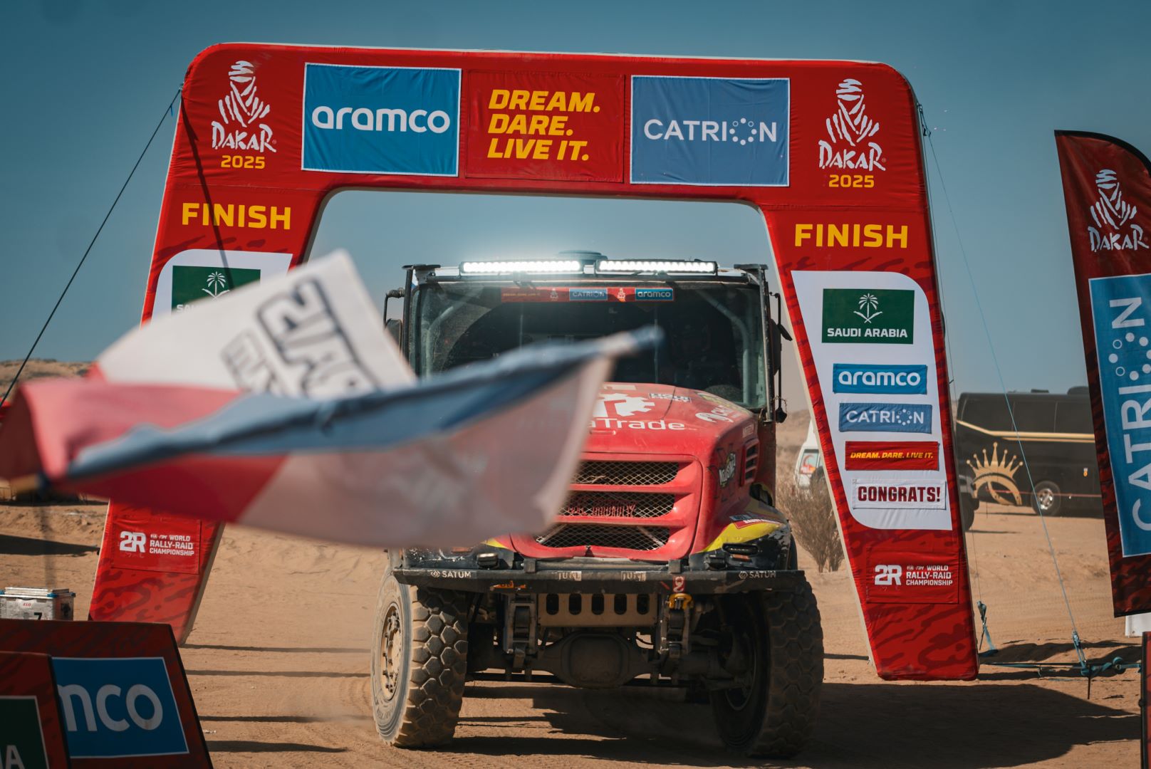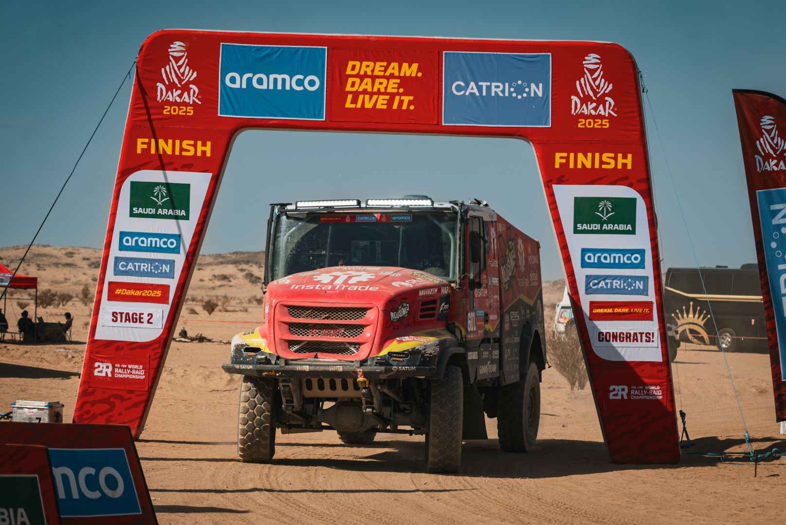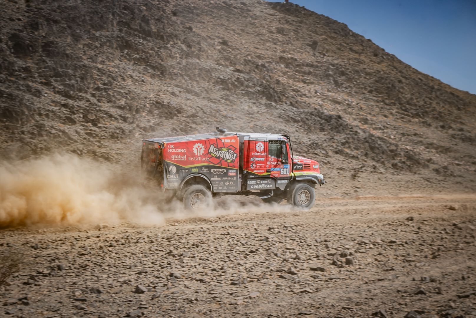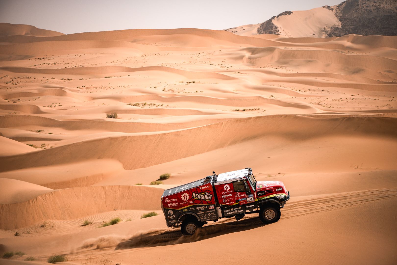 For all three drivers, the Iveco Powerstar proved to be a potent, solid, and reliable vehicle in the Saudi desert. The fact that Loprais of Instatrade Team de Rooy FPT suffered a puncture was just a detail, as was the fact that the Czech and his crew lost some time because they missed a waypoint. The difference to the stage winner and defending champion Martin Macík was only 9:43 minutes.