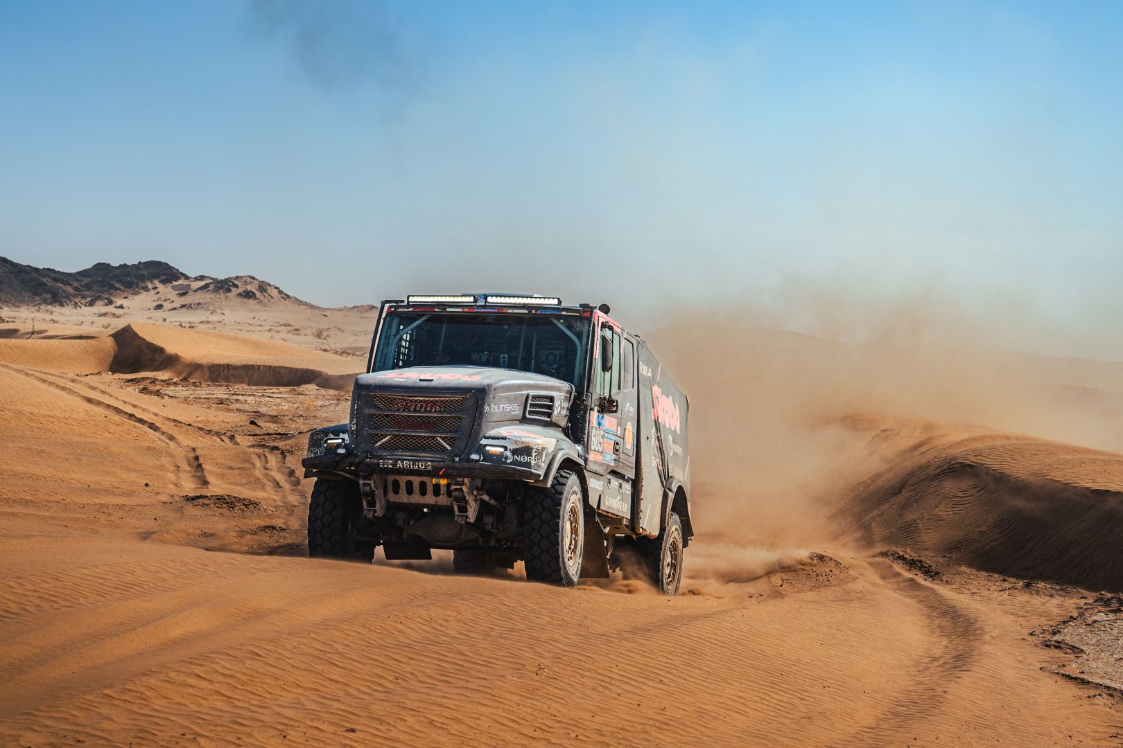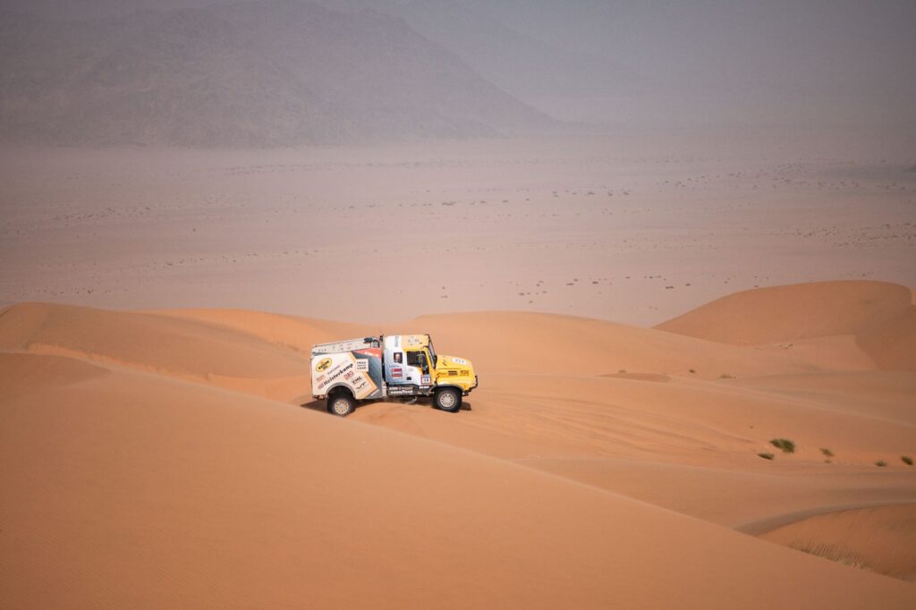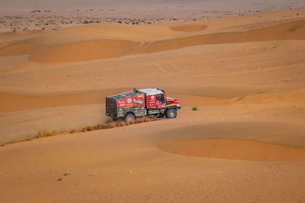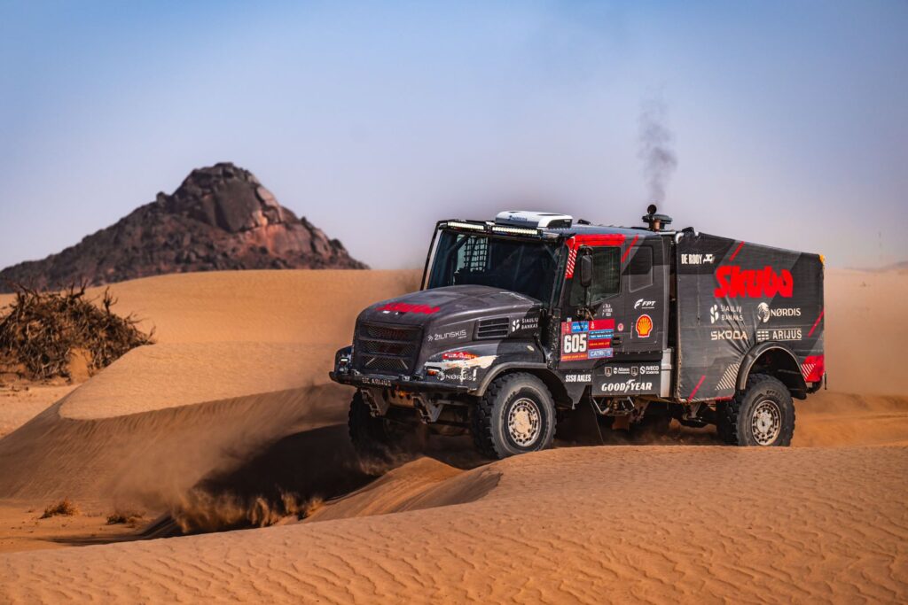 BISHA – The first day of the 48-hour stage started very well for Team de Rooy FPT. Aleš Loprais drove top times throughout the day and arrived at the bivouac in second place. Vaidotas Žala also joined the fight at the front and arrived at the bivouac in third place. Anja van Loon, together with her brothers Jan and Ben van de Laar, suffered some damage on the way but still managed to stay in the top five for a long time.